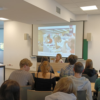 Pani dr inż. Agnieszka Kamińska przedstawiła zasady uczestnictwa w Międzynarodowych Mistrzostwach w Grach Matematycznych i Logicznych (GMIL), współorganizowanych przez Politechnikę Wrocławską i zachęcała do wzięcia udziału w konkursie, tym bardziej, że finał odbędzie się w Paryżu.